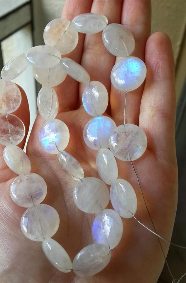 I received my custom cut, massive 16mm blue flash natural rainbow moonstones from my supplier: