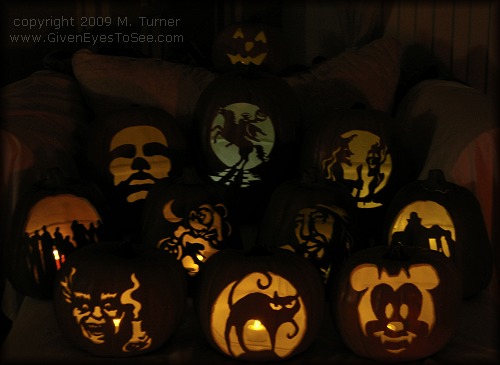 Got out the pumpkins from previous years and added to it with three more. (We use the fake ones now since we all spend so much time carving them, it's a shame to throw them away in a few days. So now we save them and are up to 11 pumpkins for the display. It's our very own pumpkin patch!)