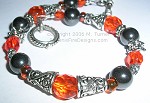 Hematite and Orange Czech glass with silver accents bracelet