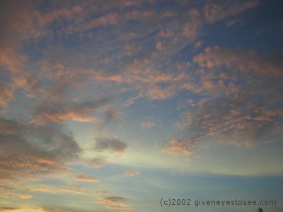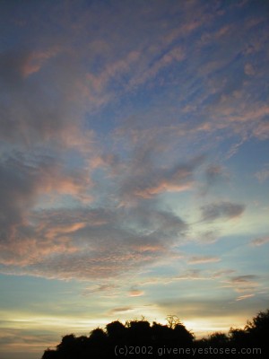 Views From a Balcony 8/19/02 the clouds seems to dance across the sky, tinted with the softest pink